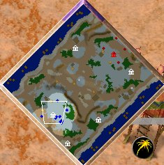 Description : Carte mixte avec de l'eau des 2 cotés de la carte. Chacun dispose de 2 mines d'or dans sa base, le reste se trouve au milieu. Ici l'important est l'or au milieu et la stratégie est souvent faite en fonction de cela. Il y a beaucoup de bancs de poissons disponibles des 2 cotés et la forêt est abondante aussi.