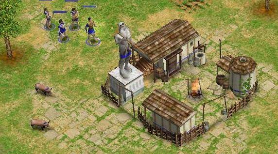 Dans un premier temps il va falloir produire un villageois dans le forum et lui attribuer la tache de ramasser de la nourriture, ce villageois solitaire sera rejoint par d’autre pour amasser 100 points de nourriture, 100 points de bois et 100 points d’or. Une fois ces ressources emmagasinées, on va construire un temple et produire de la faveur. Cinq points de faveur seront nécessaires pour finir cette seconde partie. La production de faveur chez les grecs se fait par la dévotion des villageois. Ces derniers se recueille au temple pour produire de la faveur.