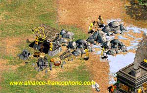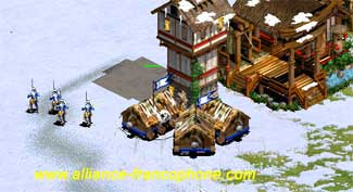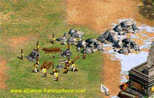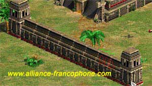 - Enfin dernière nouveauté dénotant l'évolution de l'IA, la construction des murs qui est beaucoup plus efficace. Les villageois se répartissent tout le long de la fortification afin de la construire le plus rapidement possible.
