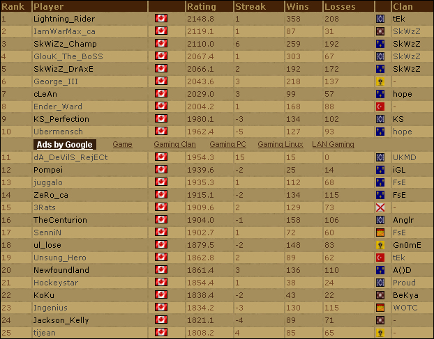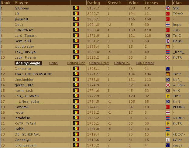 L'article qui présente les "anciens classements" a été mis à jour avec les classements du 3 janvier 2007. Grosse mis à jour puisque vous pourrez y retrouver neuf classements différents sur AOE3 et TWC. Des classements bien sur disponible sur elorating.com.