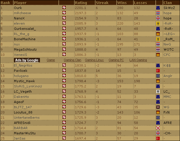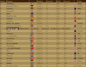 : C'est Slamer qui mène ce top grâce a ses victoires du tournoi [E-S] hier soir. Il est suivi de ScorpionX et d'Amasis.