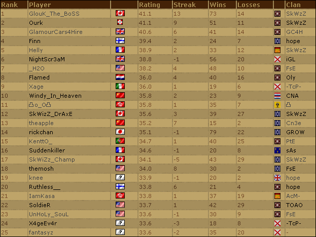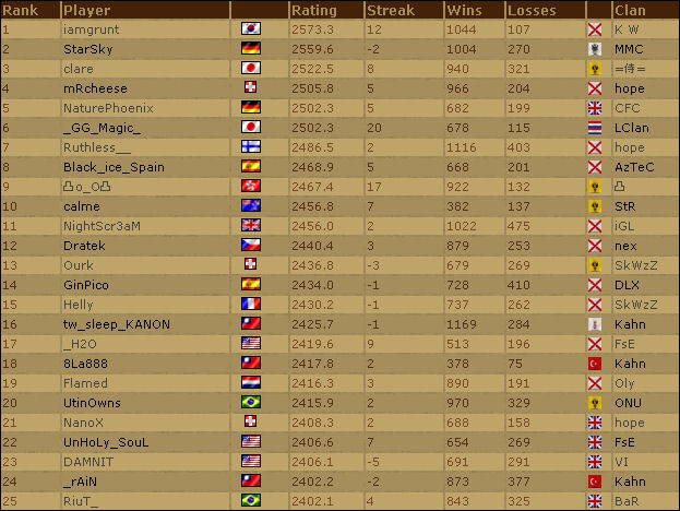 Sur AOE3 c'est toujours et encore grunt qui domine les deux classements.