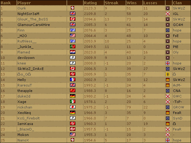 La page qui présente les anciens classements d'AOE3 a été mise à jour. Le classement de TWC a bien sur été ajouté et vous pouvez donc retrouver quatres classements :